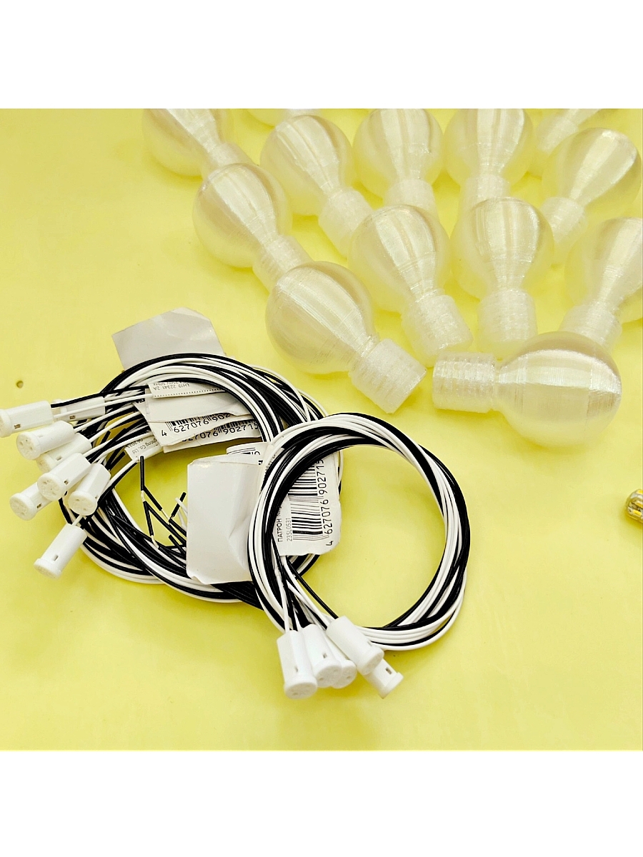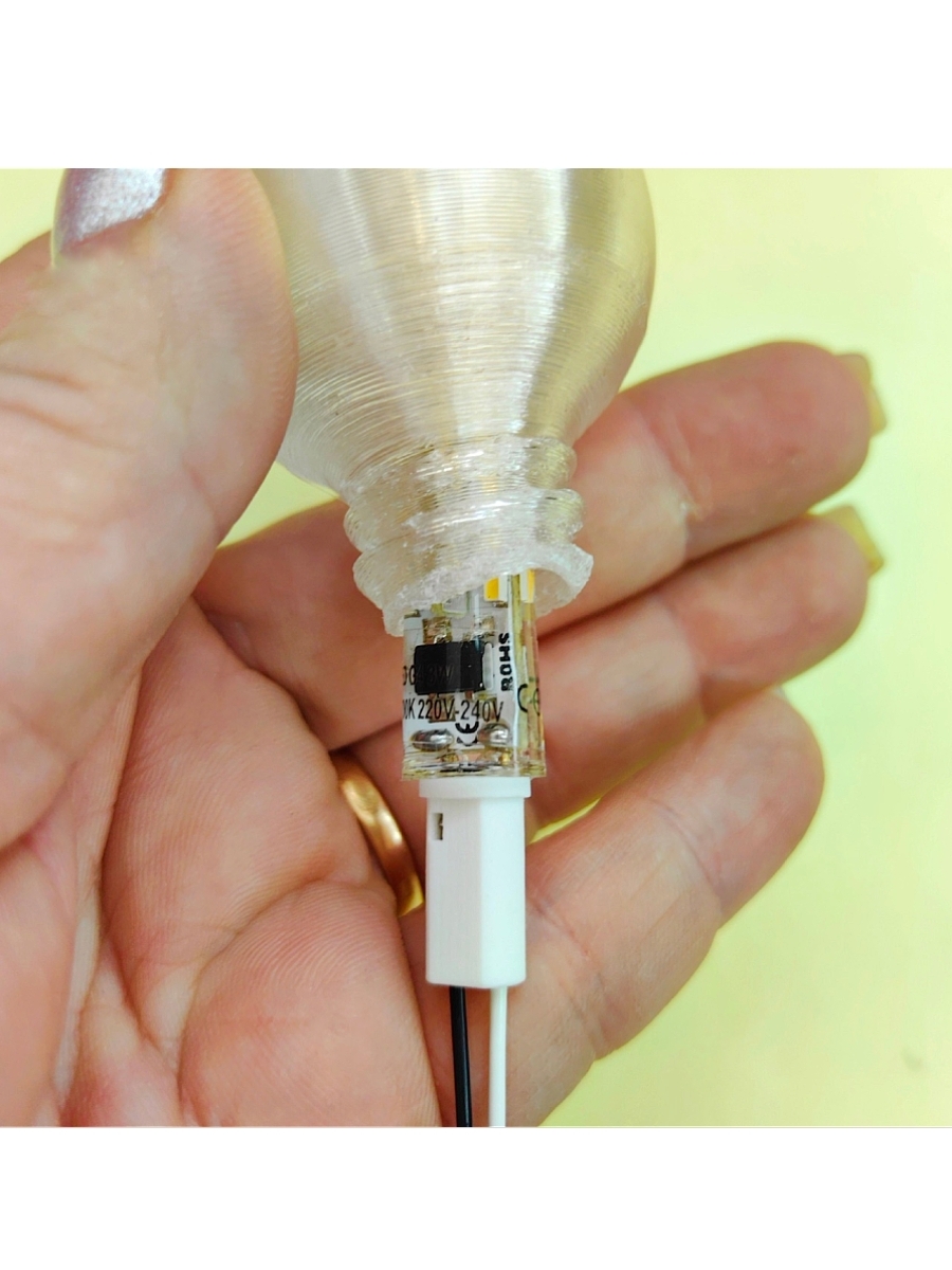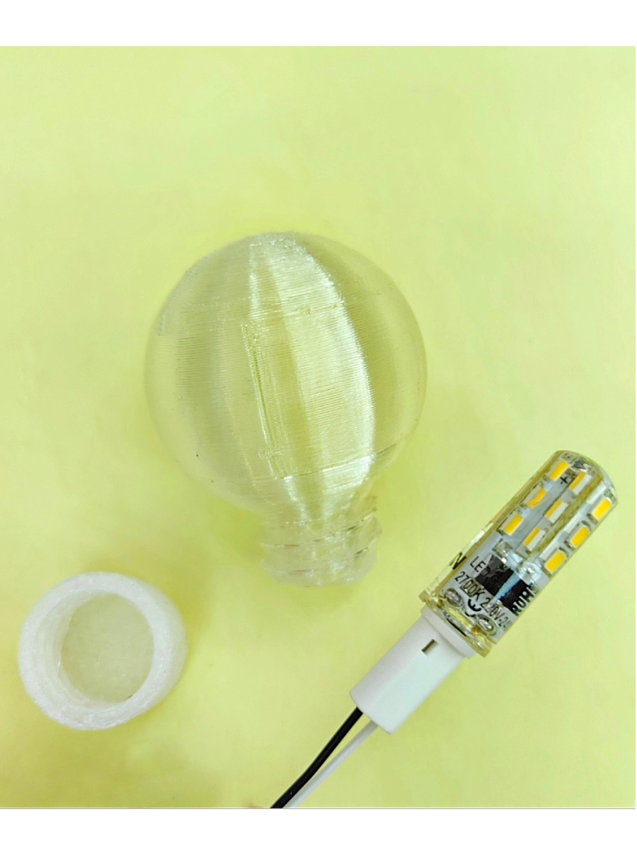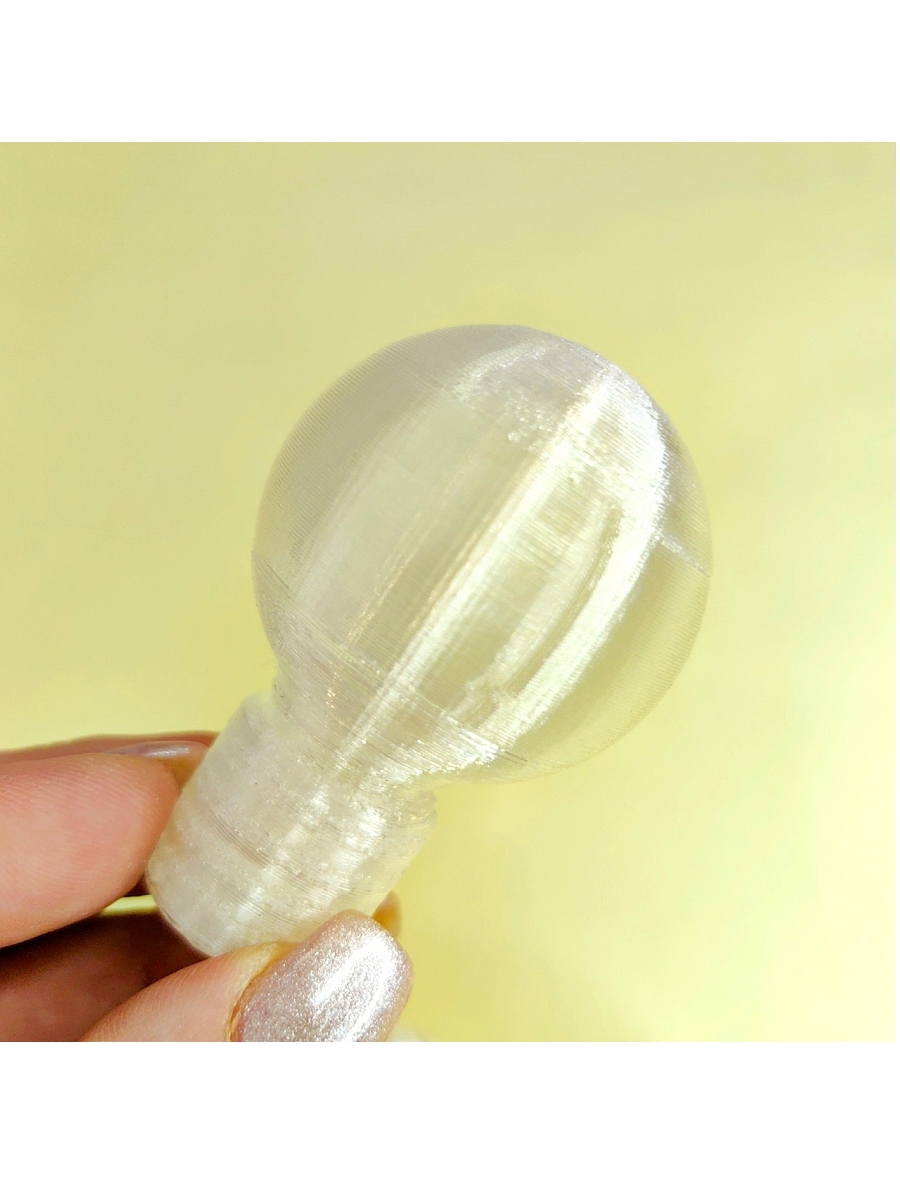 Плафон выполнен на 3D принтере из белого матового пластика и имеет отличную светопропускаемость. Он имеет форму шара, что позволяет свету равномерно распределяться внутри светильника или цветка.