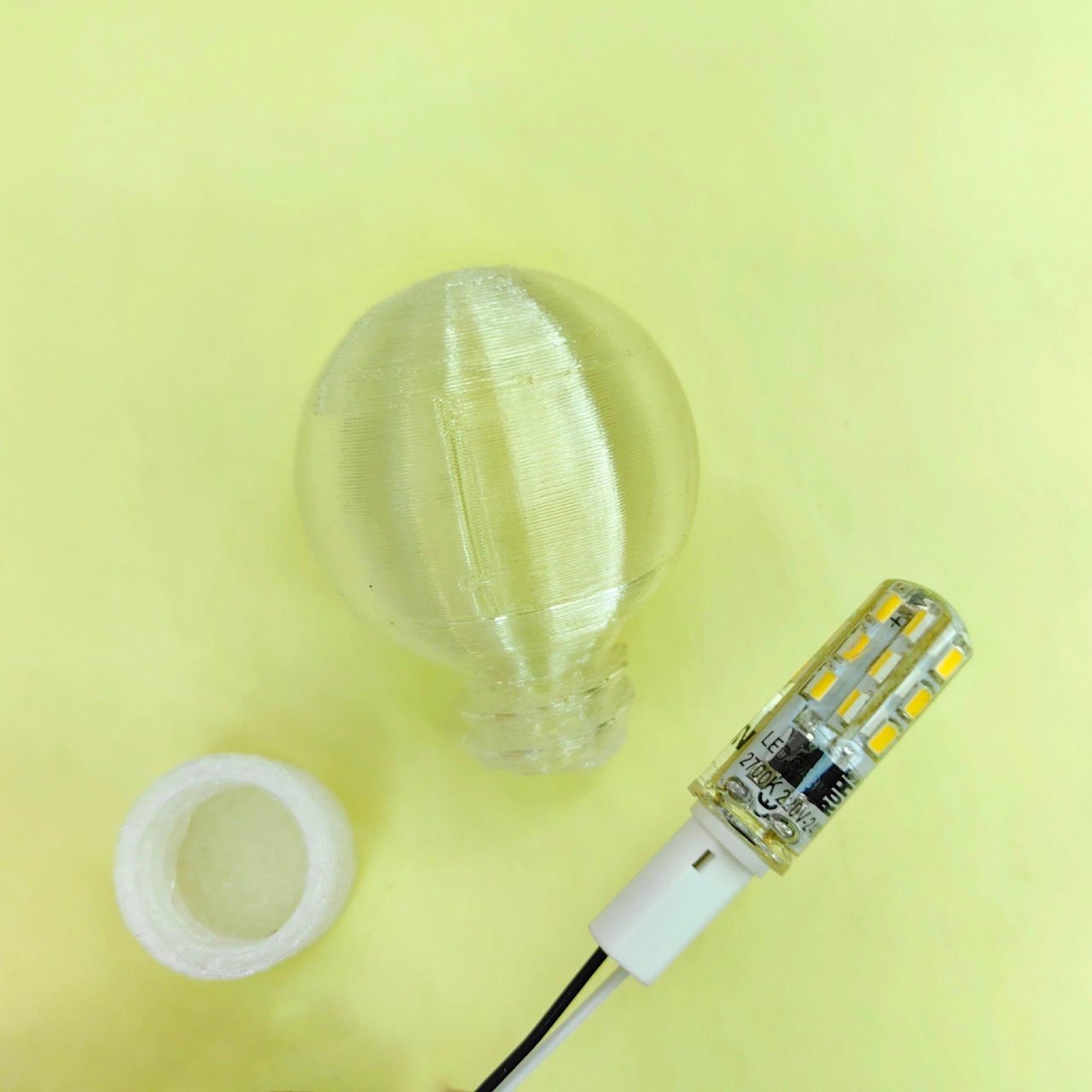 Плафон выполнен на 3D принтере из белого матового пластика и имеет отличную светопропускаемость. Он имеет форму шара, что позволяет свету равномерно распределяться внутри светильника или цветка.