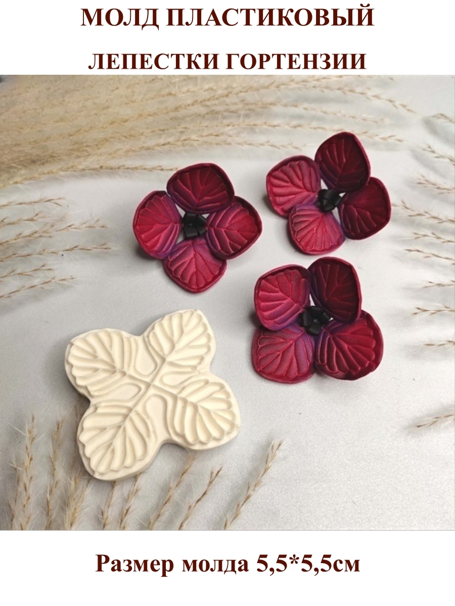 Молды для цветов из изолона и фоамирана используется для придания формы и фактуры листьям и лепесткам. После применения фактурного молда, листва становится максимально похожа на живую. Молд изготовлен из прочного полиуретана, не ломается. Вайнер изготовлен из пищевого силикона. Подходят для многократного использования. Чтобы на фоамиране или изолоне получился четкий отпечаток, его необходимо предварительно нагреть с помощью фена или утюга. Наличие пористости не является браком, так как не нарушает фактуры отпечатка на фоамиране и изолоне. Молды для творчества можно применять при рукоделии цветов и листьев розы ириса лилии тюльпана пиона гортензии ромашки пиона георгина чашелистика эпоксидной смолы свечей мыла шоколада. Молд: Гортензия (М) 5,5 х 5,5 см, пластик. Авторский дизайн. Создан Максимовой Д.В «MD-mold» Свидетельство № 023-014870 от 10 мая 2023 г.