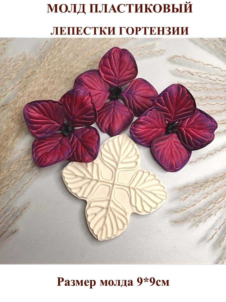 Молды для цветов из изолона и фоамирана используется для придания формы и фактуры листьям и лепесткам. После применения фактурного молда, листва становится максимально похожа на живую. Молд изготовлен из прочного полиуретана, не ломается. Вайнер изготовлен из пищевого силикона. Подходят для многократного использования. Чтобы на фоамиране или изолоне получился четкий отпечаток, его необходимо предварительно нагреть с помощью фена или утюга. Наличие пористости не является браком, так как не нарушает фактуры отпечатка на фоамиране и изолоне. Молды для творчества можно применять при рукоделии цветов и листьев розы ириса лилии тюльпана пиона гортензии ромашки пиона георгина чашелистика эпоксидной смолы свечей мыла шоколада. Молд: Гортензия (средний) 9 х 9 см, пластик. Авторский дизайн. Создан Максимовой Д.В «MD-mold» Свидетельство № 023-014870 от 10 мая 2023 г.