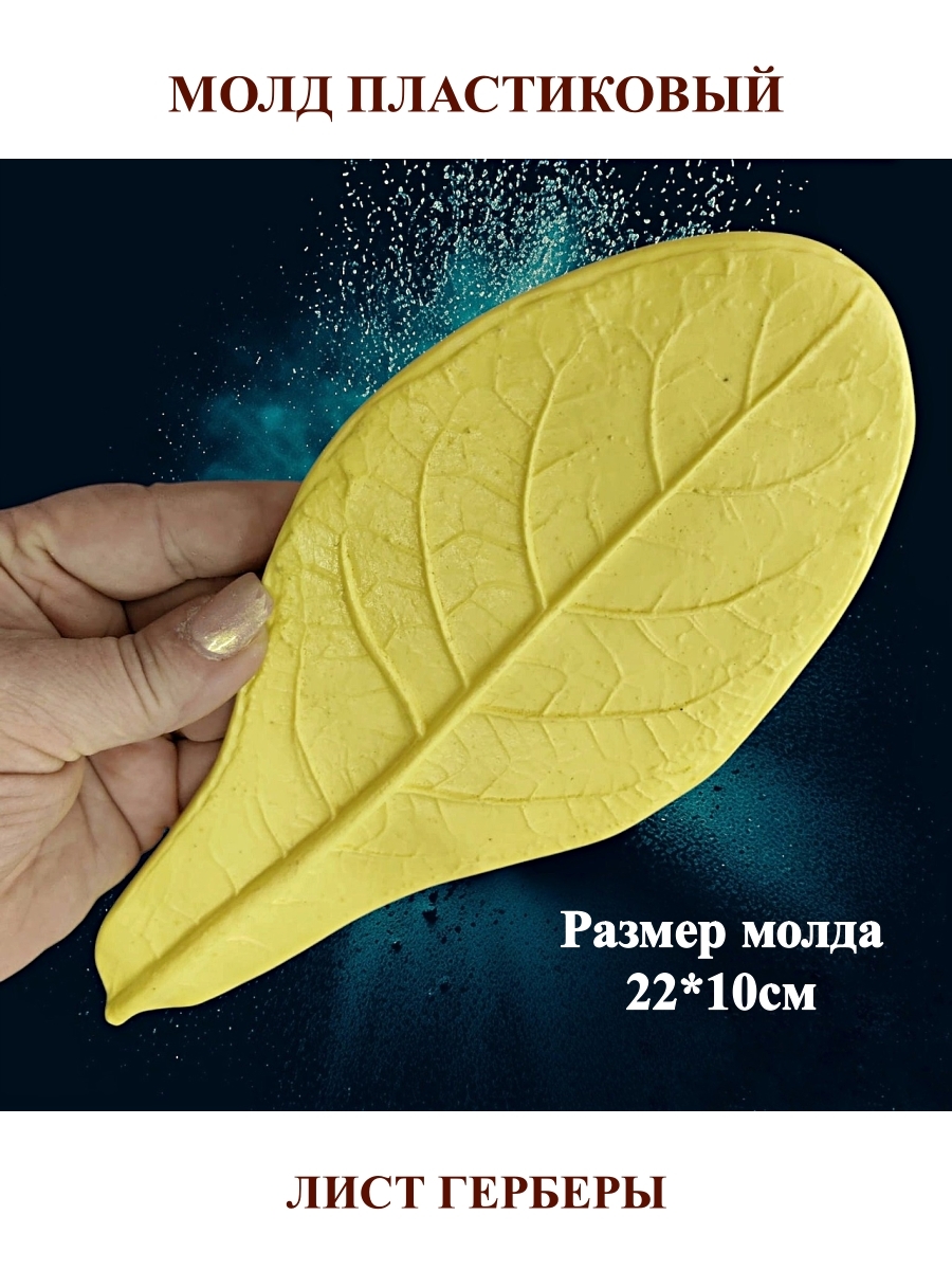 Молды для цветов из изолона и фоамирана используется для придания формы и фактуры листьям и лепесткам. После применения фактурного молда, листва становится максимально похожа на живую. Молд изготовлен из прочного полиуретана, не ломается. Подходят для многократного использования. Чтобы на фоамиране или изолоне получился четкий отпечаток, его необходимо предварительно нагреть с помощью фена или утюга. Наличие пористости не является браком, так как не нарушает фактуры отпечатка на фоамиране и изолоне. Молды для творчества можно применять при рукоделии цветов и листьев розы ириса лилии тюльпана пиона гортензии ромашки пиона георгина чашелистика эпоксидной смолы свечей мыла шоколада. Молд: лист герберы 22х10 см, пластик.