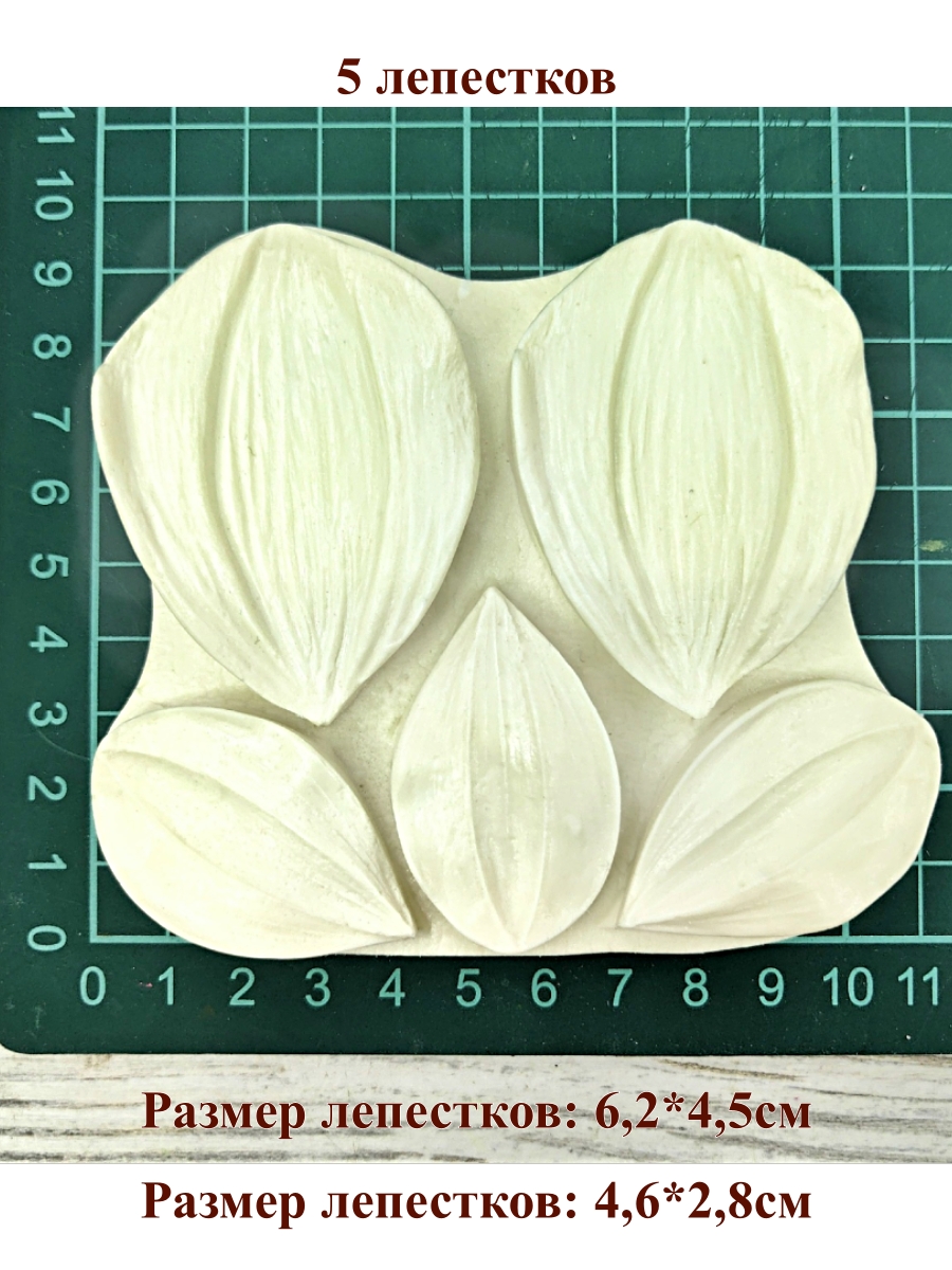 Размер молда 10,8х9,4см. Размер лепестков: 4,6х2,8см-3шт, 6,2х4,5-2шт