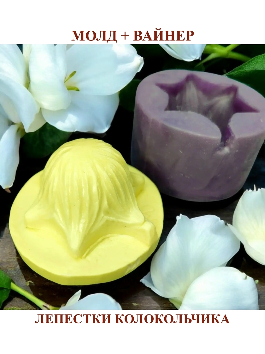 Авторский вайнер лепестки колокольчика: Состоит из двух частей: пластик + силикон. Часть А (в пластике): диаметр 7,6 см, обратная часть – часть Б (в силиконе): диаметр 7,6 см.