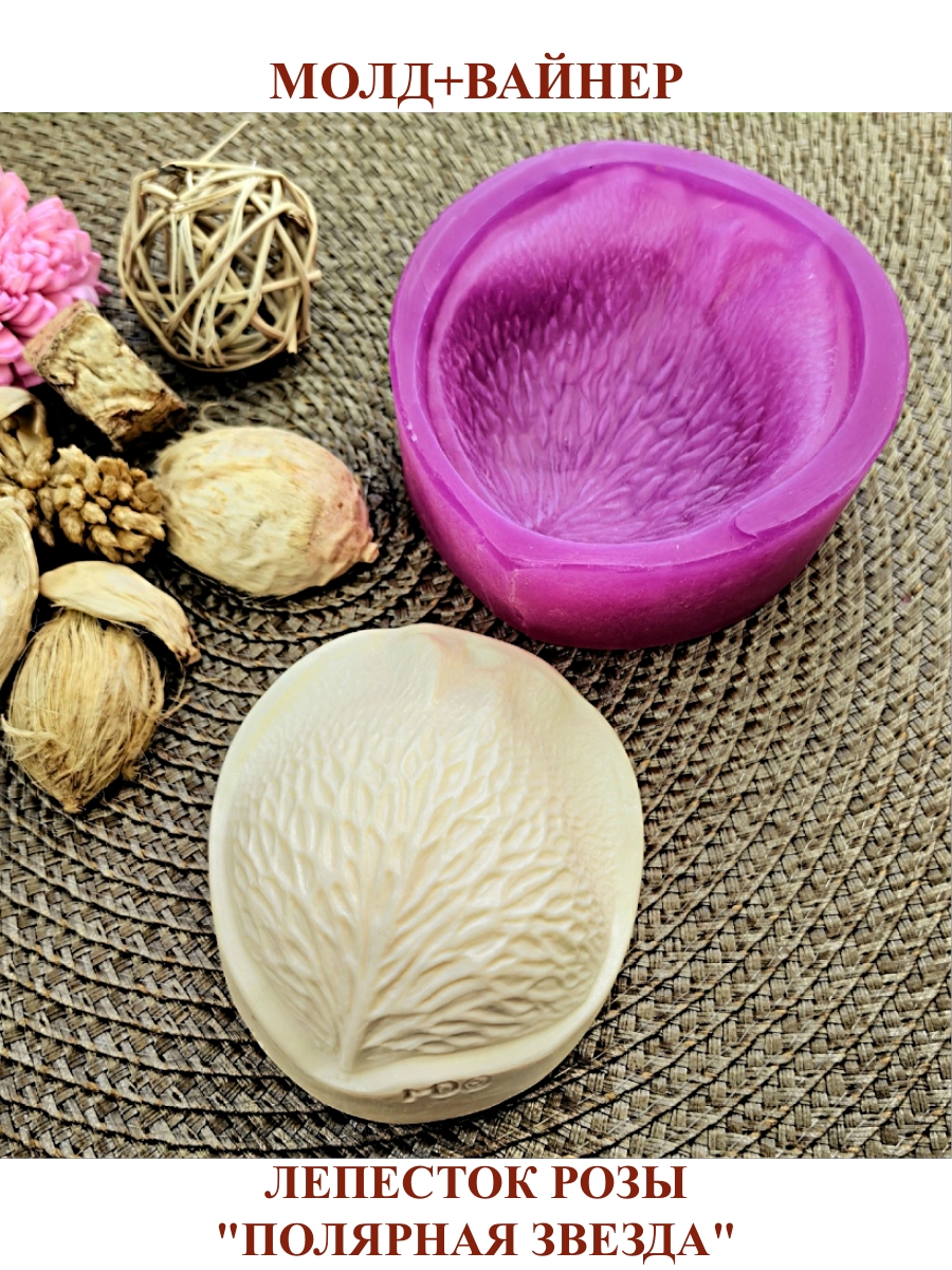 Авторский вайнер Полярная звезда лепесток розы: Часть А (в пластике): 8,5х7,2 см, Обратная часть – часть Б (в силиконе): 9,8х9,2 см.