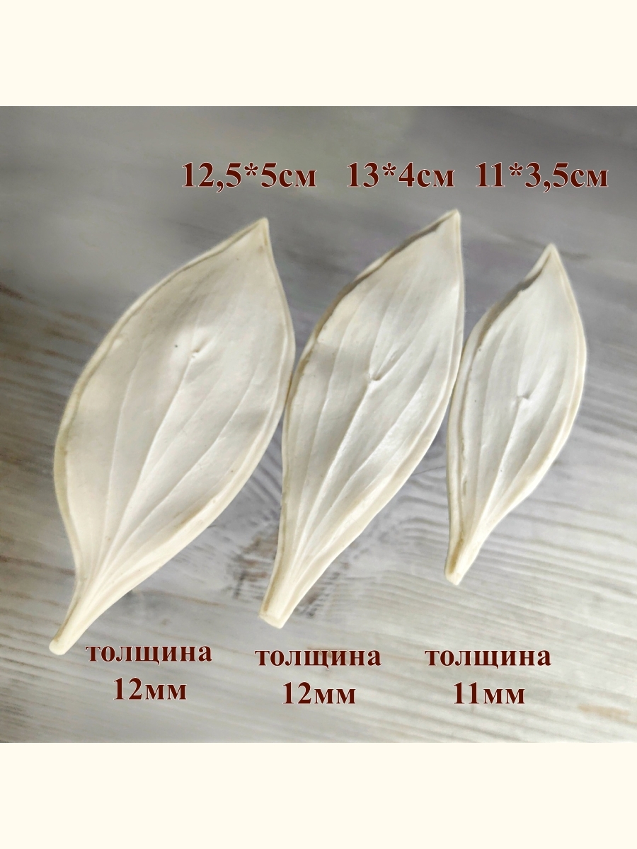 Молды для цветов из изолона и фоамирана используется для придания формы и фактуры листьям и лепесткам. После применения фактурного молда, листва становится максимально похожа на живую. Молд изготовлен из прочного полиуретана, не ломается. Вайнер изготовлен из пищевого силикона. Подходят для многократного использования. Чтобы на фоамиране или изолоне получился четкий отпечаток, его необходимо предварительно нагреть с помощью фена или утюга. Наличие пористости не является браком, так как не нарушает фактуры отпечатка на фоамиране и изолоне. Молды для творчества можно применять при рукоделии цветов и листьев розы ириса лилии тюльпана пиона гортензии ромашки пиона георгина чашелистика эпоксидной смолы свечей мыла шоколада. Размер: молд 12,5х7см. толщина 12мм; молд 13х4см. толщина 12мм; молд 11х3,5см. толщина 11мм.