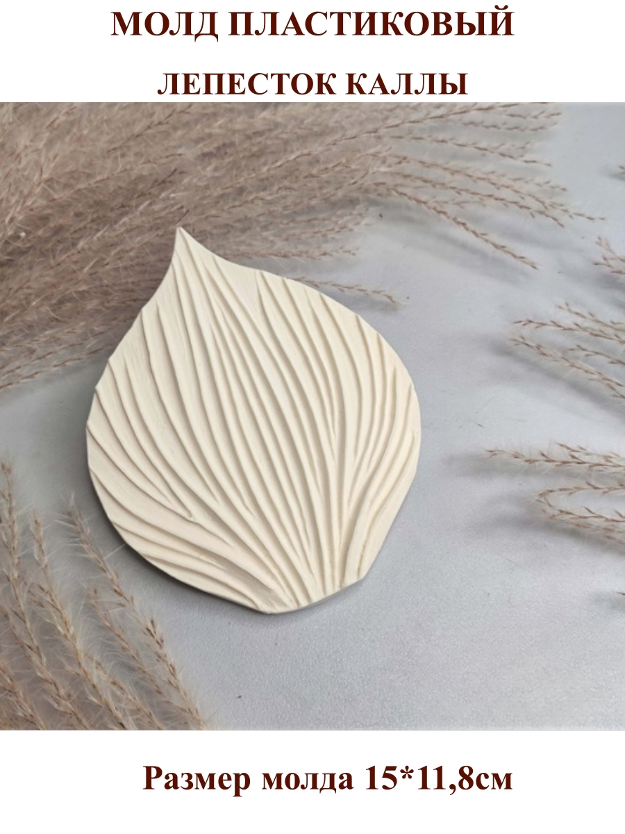 Молды для цветов из изолона и фоамирана используется для придания формы и фактуры листьям и лепесткам. После применения фактурного молда, листва становится максимально похожа на живую. Молд изготовлен из прочного полиуретана, не ломается. Вайнер изготовлен из пищевого силикона. Подходят для многократного использования. Чтобы на фоамиране или изолоне получился четкий отпечаток, его необходимо предварительно нагреть с помощью фена или утюга. Наличие пористости не является браком, так как не нарушает фактуры отпечатка на фоамиране и изолоне. Молды для творчества можно применять при рукоделии цветов и листьев розы ириса лилии тюльпана пиона гортензии ромашки пиона георгина чашелистика эпоксидной смолы свечей мыла шоколада. Молд: С-11 лепесток каллы 15 х 11,8 см, пластик. Авторский дизайн. Создан Максимовой Д.В «MD-mold» Свидетельство № 023-014870 от 10 мая 2023 г.