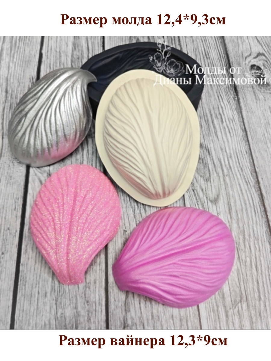 Молды для цветов из изолона и фоамирана используется для придания формы и фактуры листьям и лепесткам. После применения фактурного молда, листва становится максимально похожа на живую. Молд изготовлен из прочного полиуретана, не ломается. Вайнер изготовлен из пищевого силикона. Подходят для многократного использования. Чтобы на фоамиране или изолоне получился четкий отпечаток, его необходимо предварительно нагреть с помощью фена или утюга. Наличие пористости не является браком, так как не нарушает фактуры отпечатка на фоамиране и изолоне. Молды для творчества можно применять при рукоделии цветов и листьев розы ириса лилии тюльпана пиона гортензии ромашки пиона георгина чашелистика эпоксидной смолы свечей мыла шоколада. Авторский вайнер ВБ-65 состоит из двух частей: Часть А (в пластике): 12,4 х 9,3 см, Обратная часть – часть Б (в силиконе): 12,3 х 9 см. Авторский дизайн. Создан Максимовой Д.В «MD-mold» Свидетельство № 023-014870 от 10 мая 2023 г.