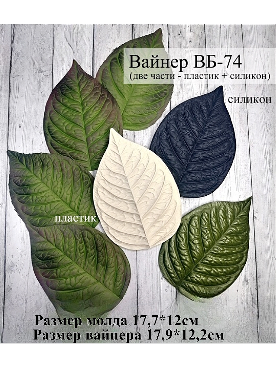 Молды для цветов из изолона и фоамирана используется для придания формы и фактуры листьям и лепесткам. После применения фактурного молда, листва становится максимально похожа на живую. Молд изготовлен из прочного полиуретана, не ломается. Вайнер изготовлен из пищевого силикона. Подходят для многократного использования. Чтобы на фоамиране или изолоне получился четкий отпечаток, его необходимо предварительно нагреть с помощью фена или утюга. Наличие пористости не является браком, так как не нарушает фактуры отпечатка на фоамиране и изолоне. Молды для творчества можно применять при рукоделии цветов и листьев розы ириса лилии тюльпана пиона гортензии ромашки пиона георгина чашелистика эпоксидной смолы свечей мыла шоколада. Авторский вайнер ВБ-74 состоит из двух частей: Часть А (в пластике): 17,7 х 12 см, обратная часть – часть Б (в силиконе): 17,9 х 12,2 см. Создан Максимовой Д.В «MD-mold» Свидетельство № 023-014870 от 10 мая 2023 г.