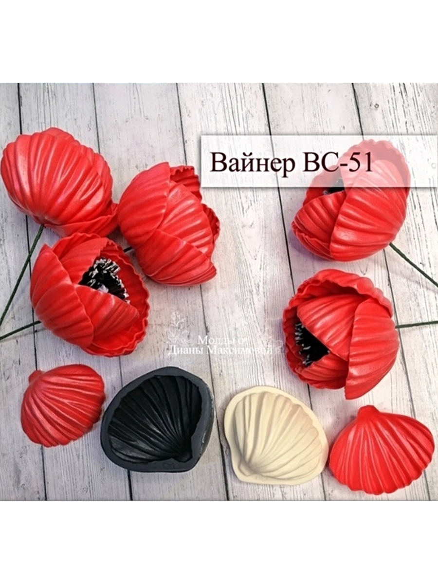 Молды для цветов из изолона и фоамирана используется для придания формы и фактуры листьям и лепесткам. После применения фактурного молда, листва становится максимально похожа на живую. Молд изготовлен из прочного полиуретана, не ломается. Вайнер изготовлен из пищевого силикона. Подходят для многократного использования. Чтобы на фоамиране или изолоне получился четкий отпечаток, его необходимо предварительно нагреть с помощью фена или утюга. Наличие пористости не является браком, так как не нарушает фактуры отпечатка на фоамиране и изолоне. Молды для творчества можно применять при рукоделии цветов и листьев розы ириса лилии тюльпана пиона гортензии ромашки пиона георгина чашелистика эпоксидной смолы свечей мыла шоколада. Авторский вайнер ВС-51 состоит из двух частей: Часть А (в пластике): 6,3 х 7,2 см, обратная часть – часть Б (в силиконе): 6,3 х 7,1 см. *цветок +-9 см. Авторский дизайн. Создан Максимовой Д.В «MD-mold» Свидетельство № 023-014870 от 10 мая 2023 г.