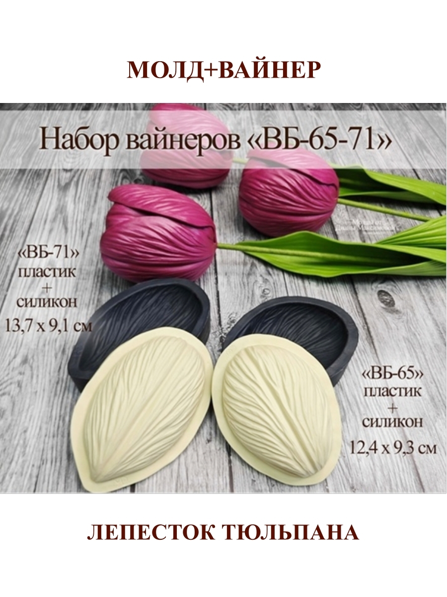 Молды для цветов из изолона и фоамирана используется для придания формы и фактуры листьям и лепесткам. После применения фактурного молда, листва становится максимально похожа на живую. Молд изготовлен из прочного полиуретана, не ломается. Вайнер изготовлен из пищевого силикона. Подходят для многократного использования. Чтобы на фоамиране или изолоне получился четкий отпечаток, его необходимо предварительно нагреть с помощью фена или утюга. Наличие пористости не является браком, так как не нарушает фактуры отпечатка на фоамиране и изолоне. Молды для творчества можно применять при рукоделии цветов и листьев розы ириса лилии тюльпана пиона гортензии ромашки пиона георгина чашелистика эпоксидной смолы свечей мыла шоколада. Авторский Набор "ВБ-65-71" состоит из двух авторских объемных вайнеров: 1.Вайнер с дизайном «ВБ-71»: Часть А (в пластике): 13,7 х 9,1 см, Обратная часть – часть Б (в силиконе): 14 х 8,9 см. 2. Вайнер с дизайном «ВБ-65»: Часть А (в пластике): 12,4 х 9,3 см, Обратная часть – часть Б (в силиконе): 12,3 х 9 см. Авторский дизайн. Создан Максимовой Д.В «MD-mold» Свидетельство № 023-014870 от 10 мая 2023 г.