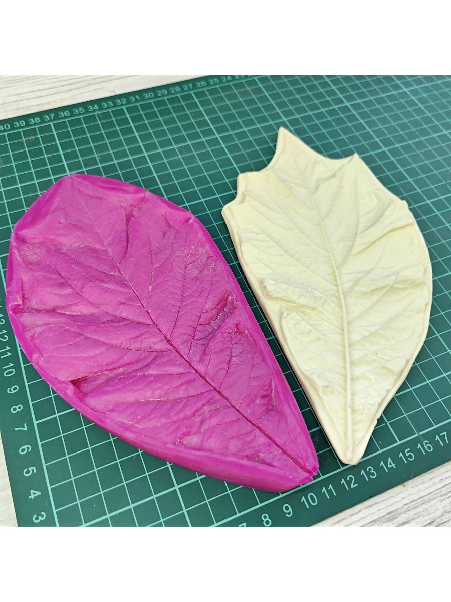 Молды для цветов из изолона и фоамирана используется для придания формы и фактуры листьям и лепесткам. После применения фактурного молда, листва становится максимально похожа на живую. Молд изготовлен из прочного полиуретана, не ломается. Вайнер изготовлен из пищевого силикона. Подходят для многократного использования. Чтобы на фоамиране или изолоне получился четкий отпечаток, его необходимо предварительно нагреть с помощью фена или утюга. Наличие пористости не является браком, так как не нарушает фактуры отпечатка на фоамиране и изолоне. Молды для творчества можно применять при рукоделии цветов и листьев розы ириса лилии тюльпана пиона гортензии ромашки пиона георгина чашелистика эпоксидной смолы свечей мыла шоколада. Молд+вайнер лист универсальный: Состоит из двух частей: пластик + силикон. Часть А (в пластике): 21,5х11,2 см, обратная часть – часть Б (в силиконе): 21х11,5 см.