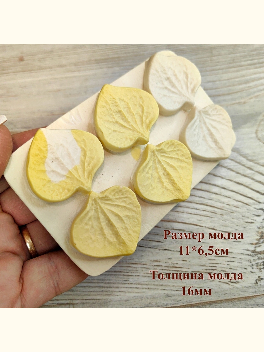 Молды для цветов из изолона и фоамирана используется для придания формы и фактуры листьям и лепесткам. После применения фактурного молда, листва становится максимально похожа на живую. Молд изготовлен из прочного полиуретана, не ломается. Вайнер изготовлен из пищевого силикона. Подходят для многократного использования. Чтобы на фоамиране или изолоне получился четкий отпечаток, его необходимо предварительно нагреть с помощью фена или утюга. Наличие пористости не является браком, так как не нарушает фактуры отпечатка на фоамиране и изолоне. Молды для творчества можно применять при рукоделии цветов и листьев розы ириса лилии тюльпана пиона гортензии ромашки пиона георгина чашелистика эпоксидной смолы свечей мыла шоколада. Размеры молдов: 15х9см. толщина молда 14мм; 11х6,5см, толщина молда 12мм; 9х5,5см толщина молда 10мм; 11х6,5см, толщина молда 16мм. Размер лепестков: 3,5х3см. (6 лепестков)