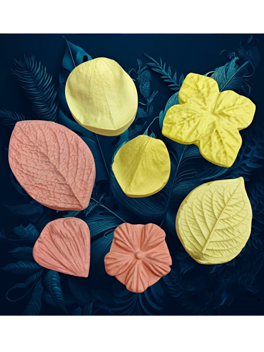 Молды для цветов из изолона и фоамирана используется для придания формы и фактуры листьям и лепесткам. После применения фактурного молда, листва становится максимально похожа на живую. Молд изготовлен из прочного полиуретана, не ломается. Подходят для многократного использования. Чтобы на фоамиране или изолоне получился четкий отпечаток, его необходимо предварительно нагреть с помощью фена или утюга. Наличие пористости не является браком, так как не нарушает фактуры отпечатка на фоамиране и изолоне. Молды для творчества можно применять при рукоделии цветов и листьев розы ириса лилии тюльпана пиона гортензии ромашки пиона георгина чашелистика эпоксидной смолы свечей мыла шоколада. Комплект молдов 7шт. Молд А лепесток анемона 4,5х5см, молд Б лепестки клубнички 4,5х4,5см, молд В лист универсальный 7х5,5см, молд Г лист розы 6х9см, молд Д лепесток розы Горка 5х4,5см, молд Е лепесток розы Горка 6х6см, молд Ж лепестки гортензии 6,5х6,5см.