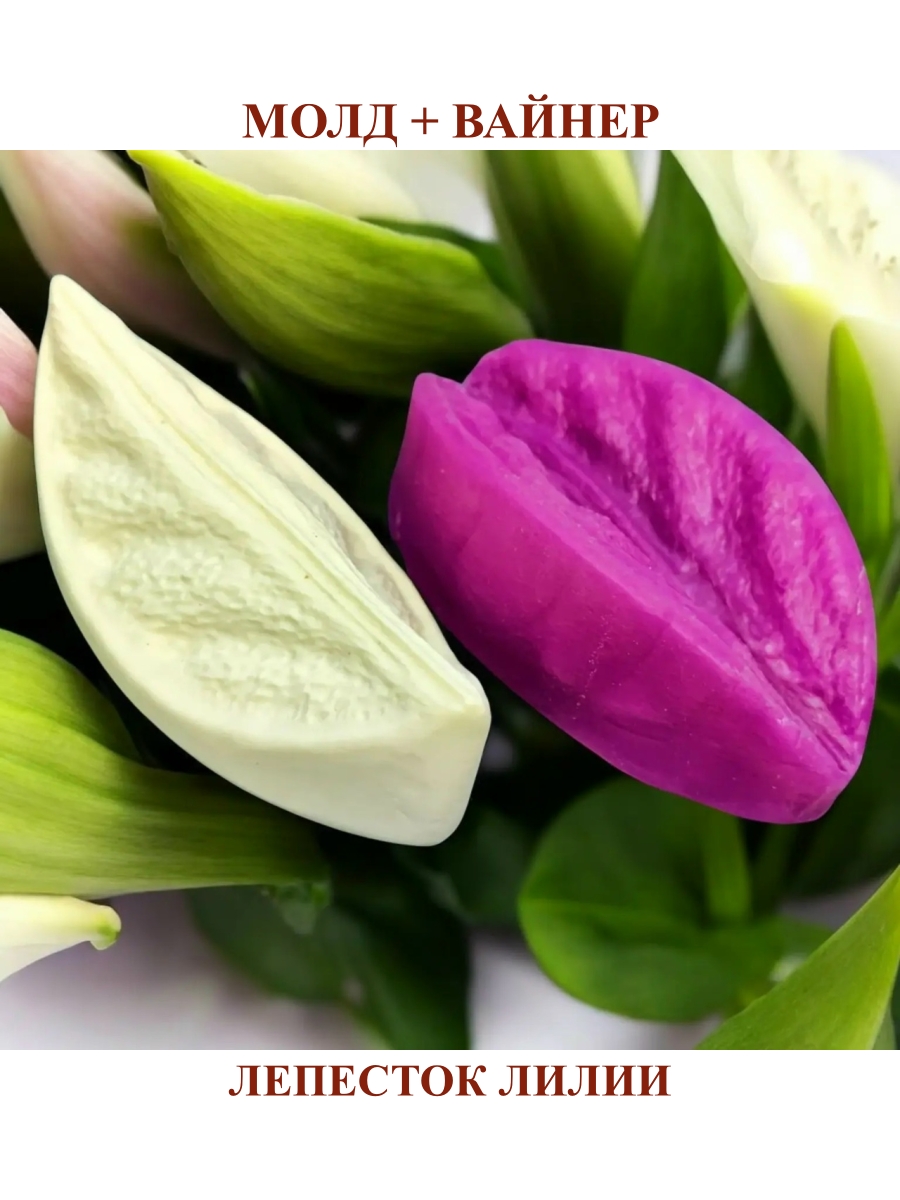 Набор состоит из 3-ёх комплектов: Молд+вайнер лепесток лилии: Часть А (в пластике): 12,5х7,2см, Обратная часть – часть Б (в силиконе): 12,2х7,3 см. Молд+вайнер лепесток лилии: Часть А (в пластике): 13,2х5,4см, Обратная часть – часть Б (в силиконе): 12,8х5,9 см. Молд+вайнер лепесток лилии: Часть А (в пластике): 11,2х5,1см, Обратная часть – часть Б (в силиконе): 10,8х5,6 см.