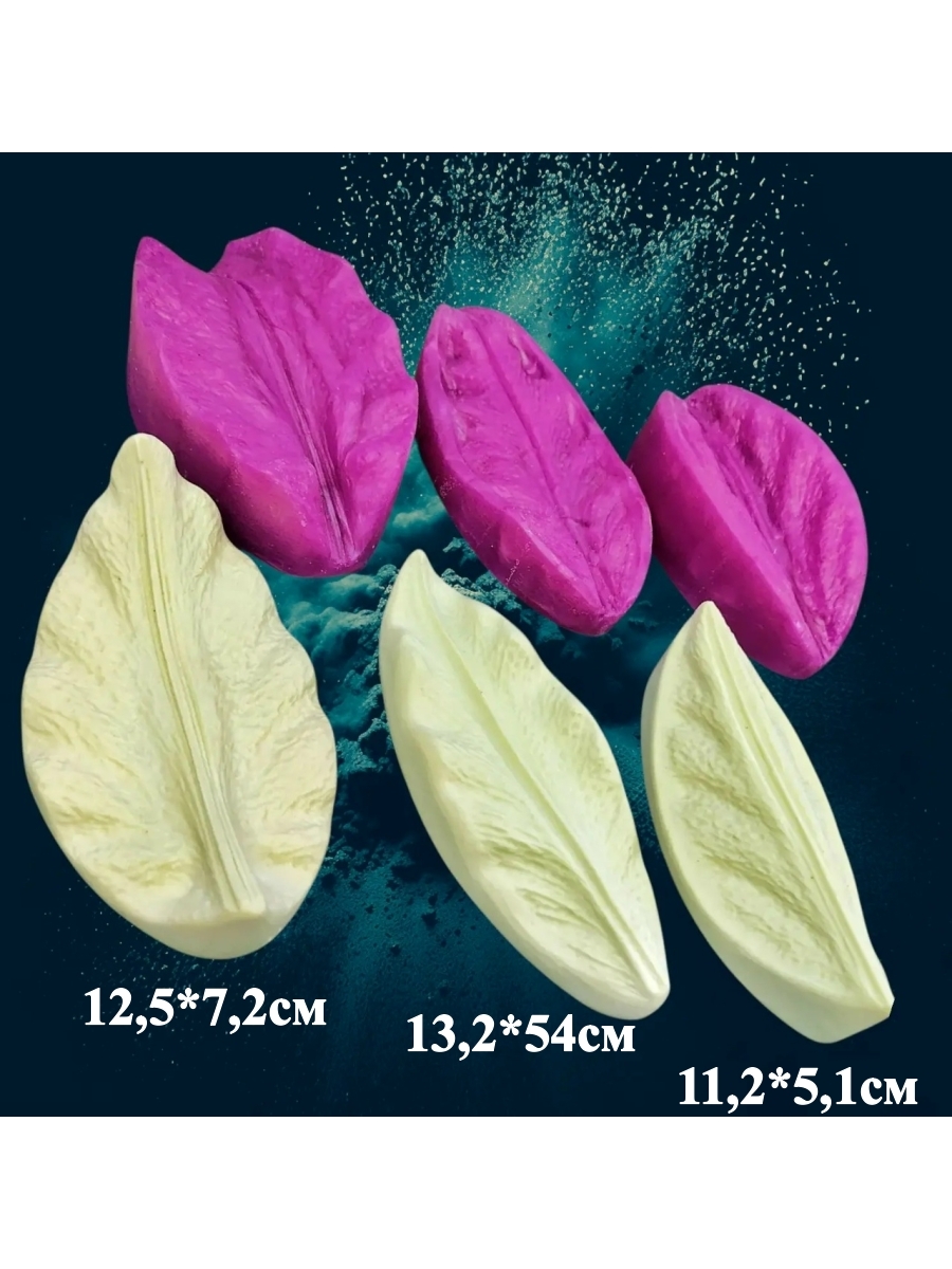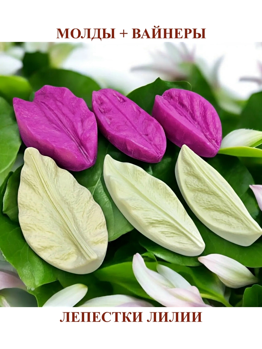 Набор состоит из 3-ёх комплектов: Молд+вайнер лепесток лилии: Часть А (в пластике): 12,5х7,2см, Обратная часть – часть Б (в силиконе): 12,2х7,3 см. Молд+вайнер лепесток лилии: Часть А (в пластике): 13,2х5,4см, Обратная часть – часть Б (в силиконе): 12,8х5,9 см. Молд+вайнер лепесток лилии: Часть А (в пластике): 11,2х5,1см, Обратная часть – часть Б (в силиконе): 10,8х5,6 см.