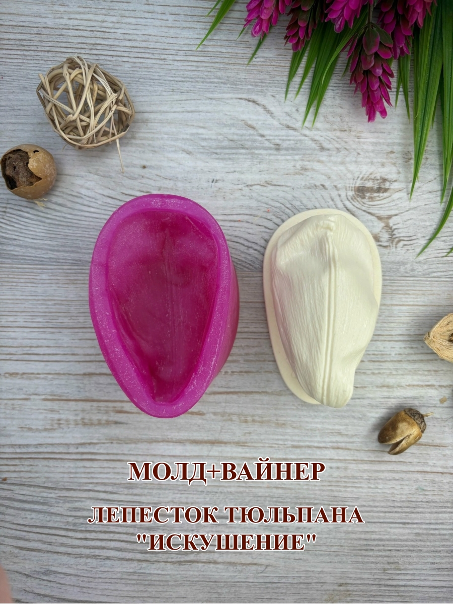 Молд+вайнер лепесток тюльпана: Часть А (в пластике): 9,2х5,1см, Обратная часть – часть Б (в силиконе): 9,8х7,0 см.