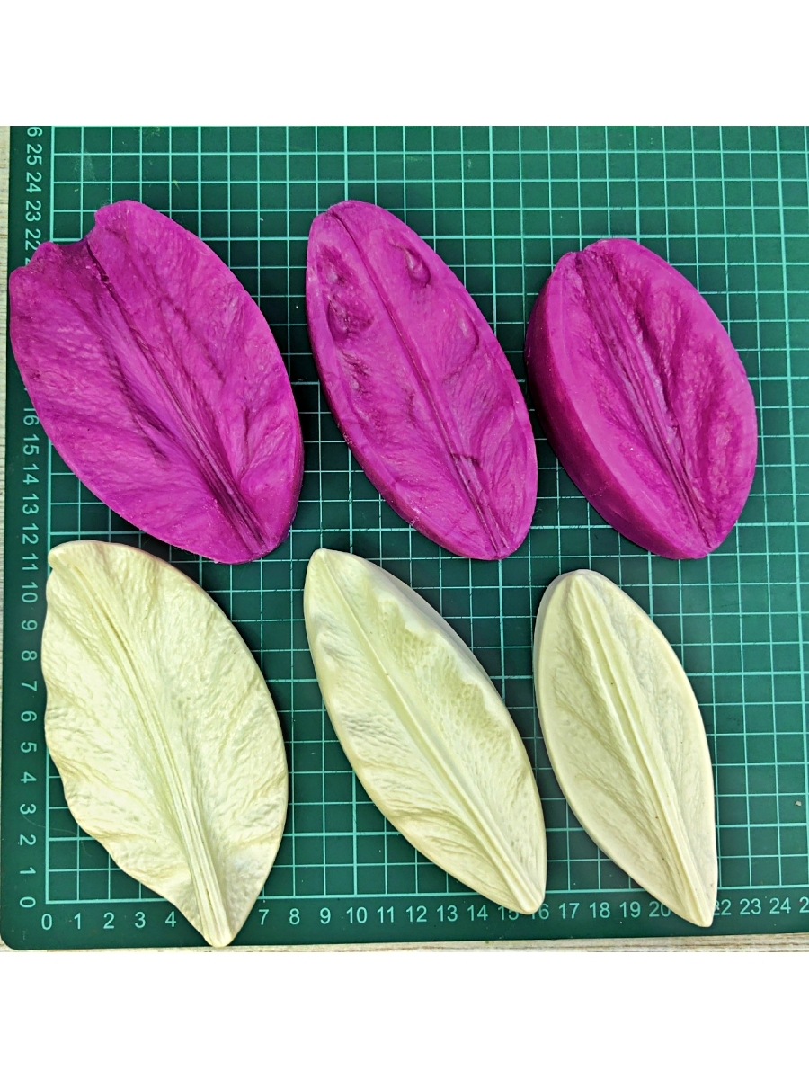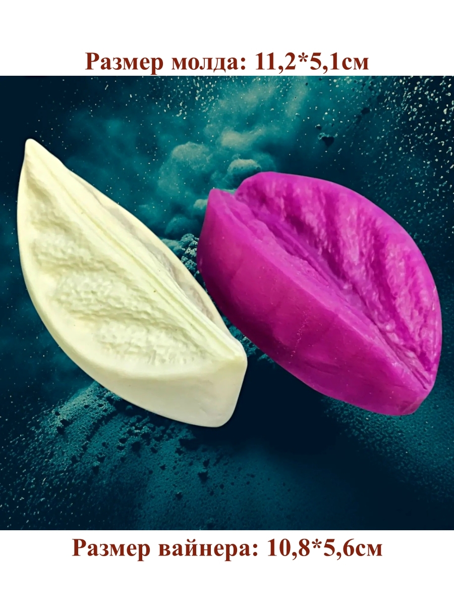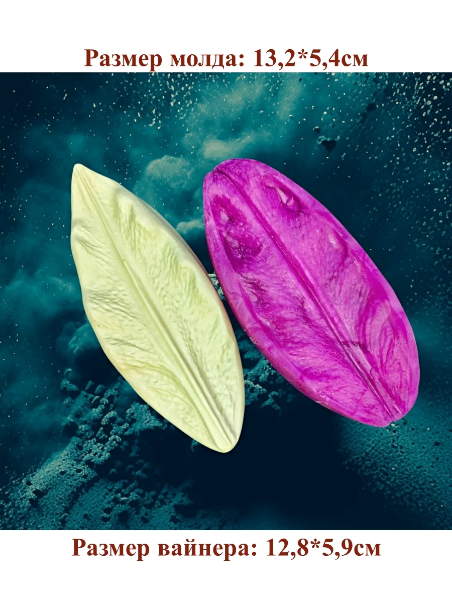 Молды для цветов из изолона и фоамирана используется для придания формы и фактуры листьям и лепесткам. После применения фактурного молда, листва становится максимально похожа на живую. Молд изготовлен из прочного полиуретана, не ломается. Вайнер изготовлен из пищевого силикона. Подходят для многократного использования. Чтобы на фоамиране или изолоне получился четкий отпечаток, его необходимо предварительно нагреть с помощью фена или утюга. Наличие пористости не является браком, так как не нарушает фактуры отпечатка на фоамиране и изолоне. Молды для творчества можно применять при рукоделии цветов и листьев розы ириса лилии тюльпана пиона гортензии ромашки пиона георгина чашелистика эпоксидной смолы свечей мыла шоколада. Набор состоит из 3-ёх комплектов: Молд+вайнер лепесток лилии: Часть А (в пластике): 12,5х7,2см, Обратная часть – часть Б (в силиконе): 12,2х7,3 см. Молд+вайнер лепесток лилии: Часть А (в пластике): 13,2х5,4см, Обратная часть – часть Б (в силиконе): 12,8х5,9 см. Молд+вайнер лепесток лилии: Часть А (в пластике): 11,2х5,1см, Обратная часть – часть Б (в силиконе): 10,8х5,6 см.