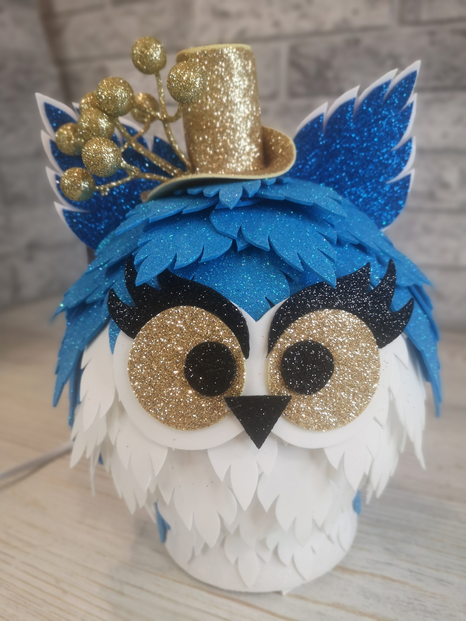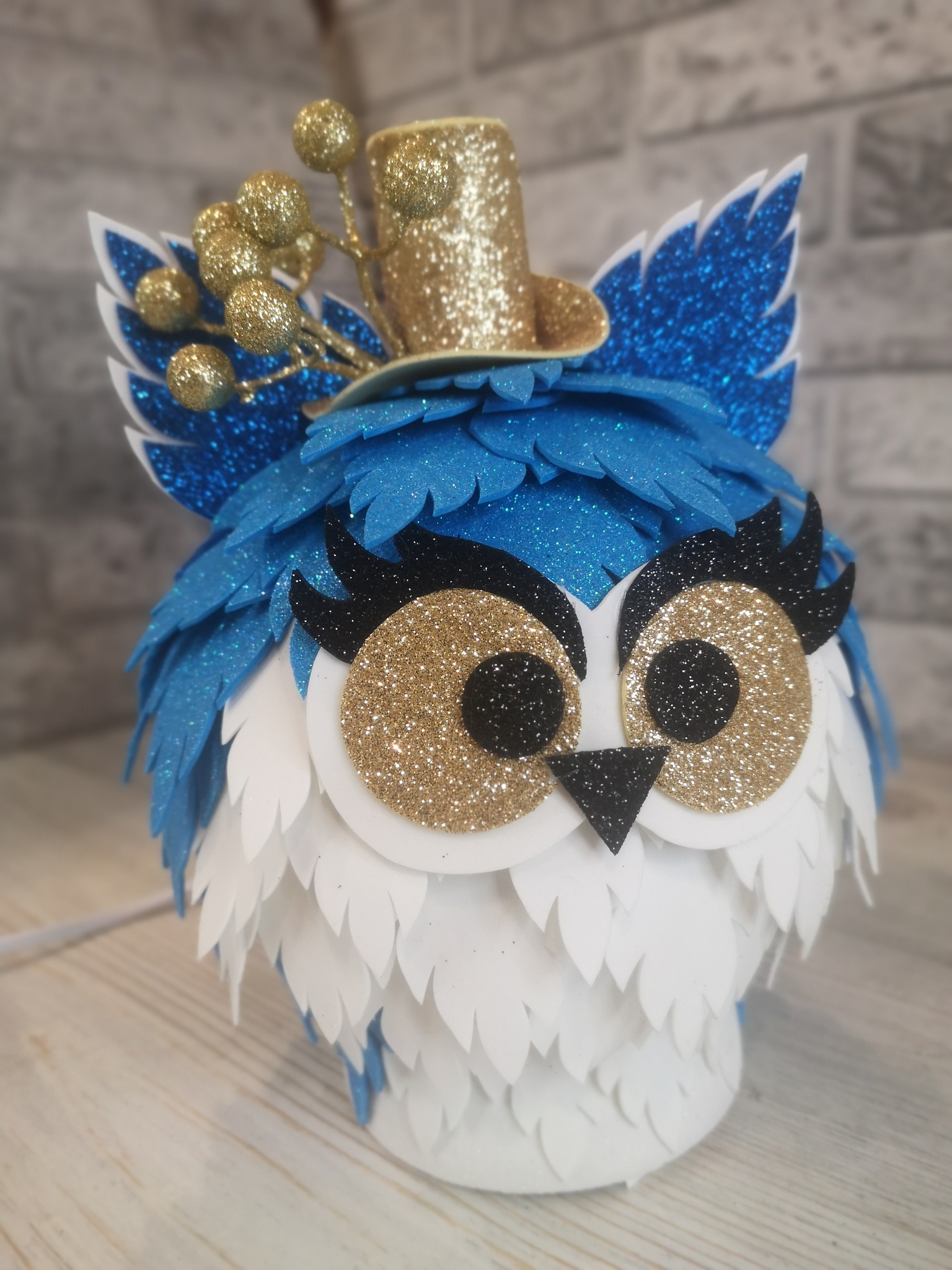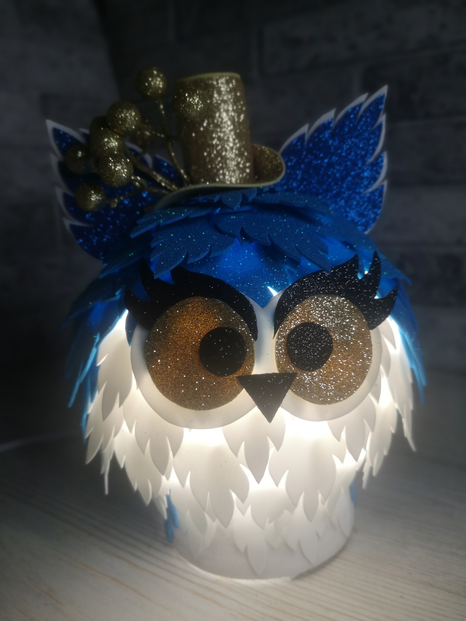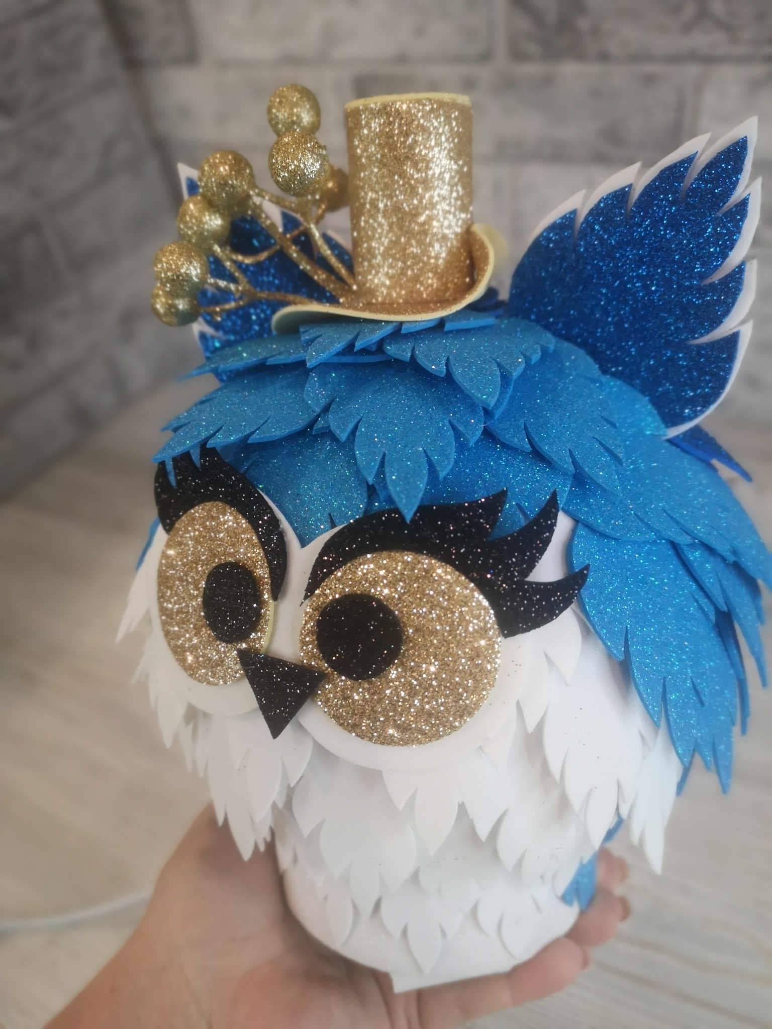 Детский ночник "Совушка"/Светильник настольный из фоамирана цвет голубой 30х20х20 см