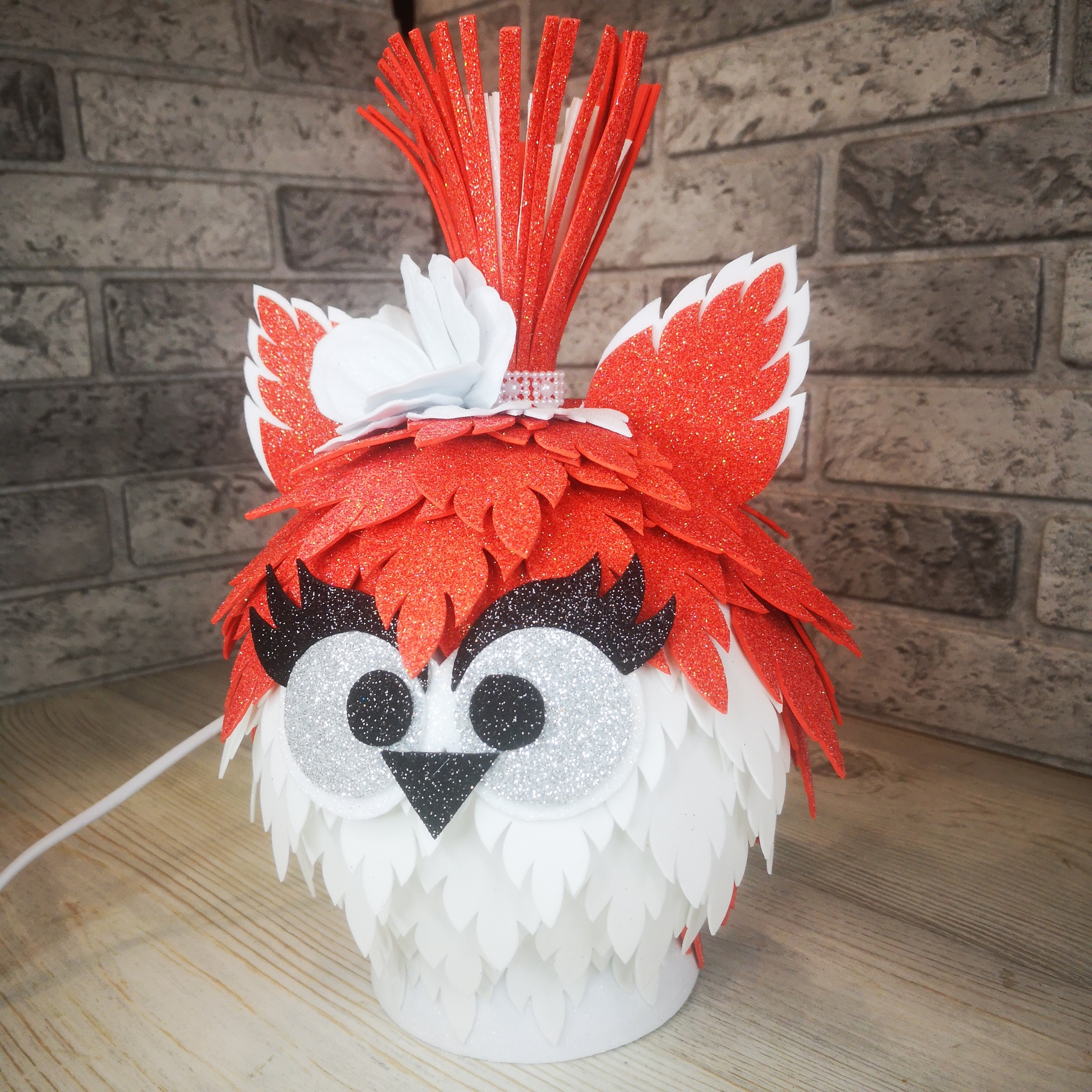 Необычный материал - фоамиран, из которого сделан этот светильник, придаст ему неповторимую оригинальность. Фоамиран не боится воды - это позволяет легко ухаживать за ним. Однако светильник необходимо ставить подальше от отопительных приборов и солнечных лучей.