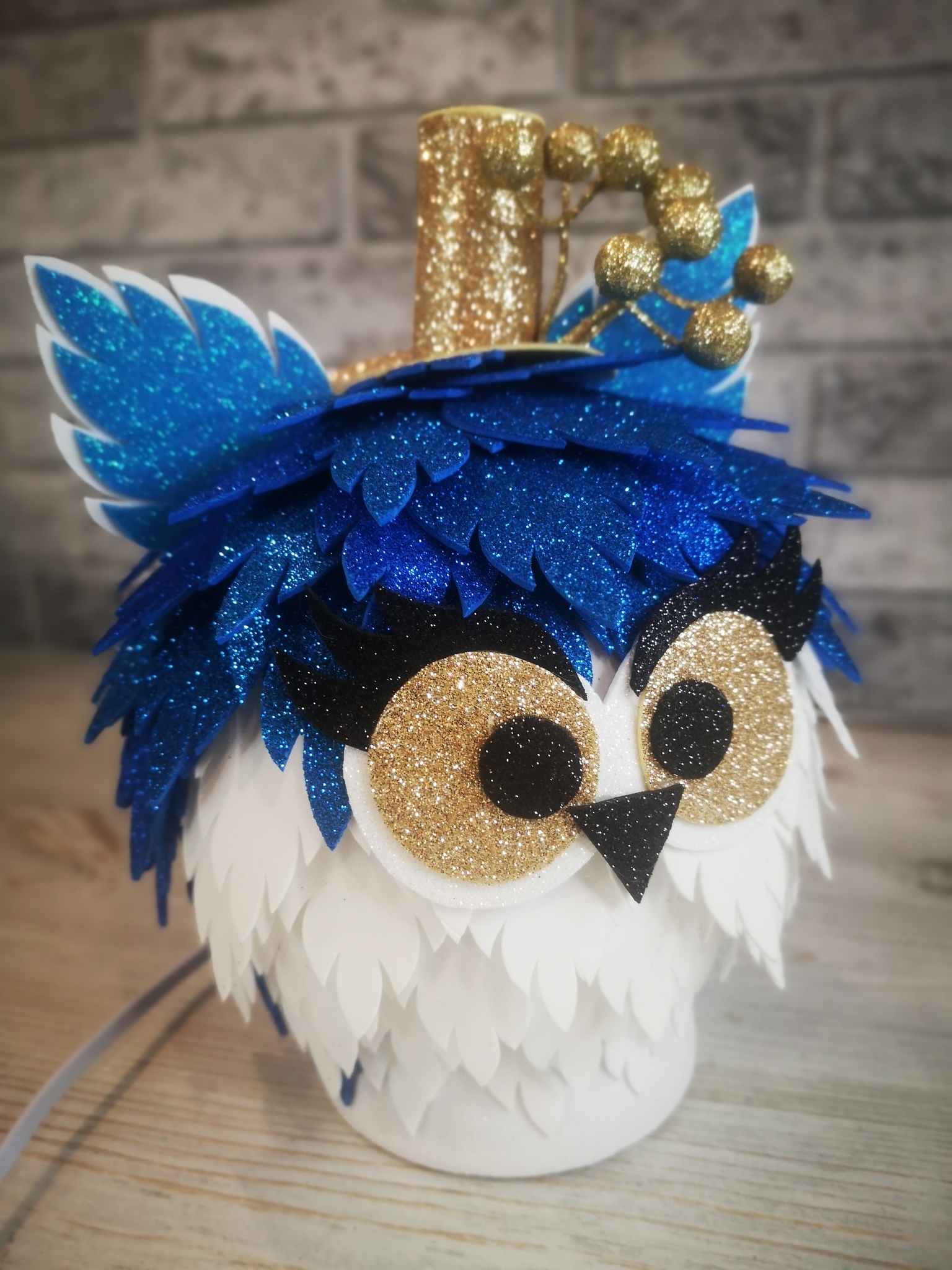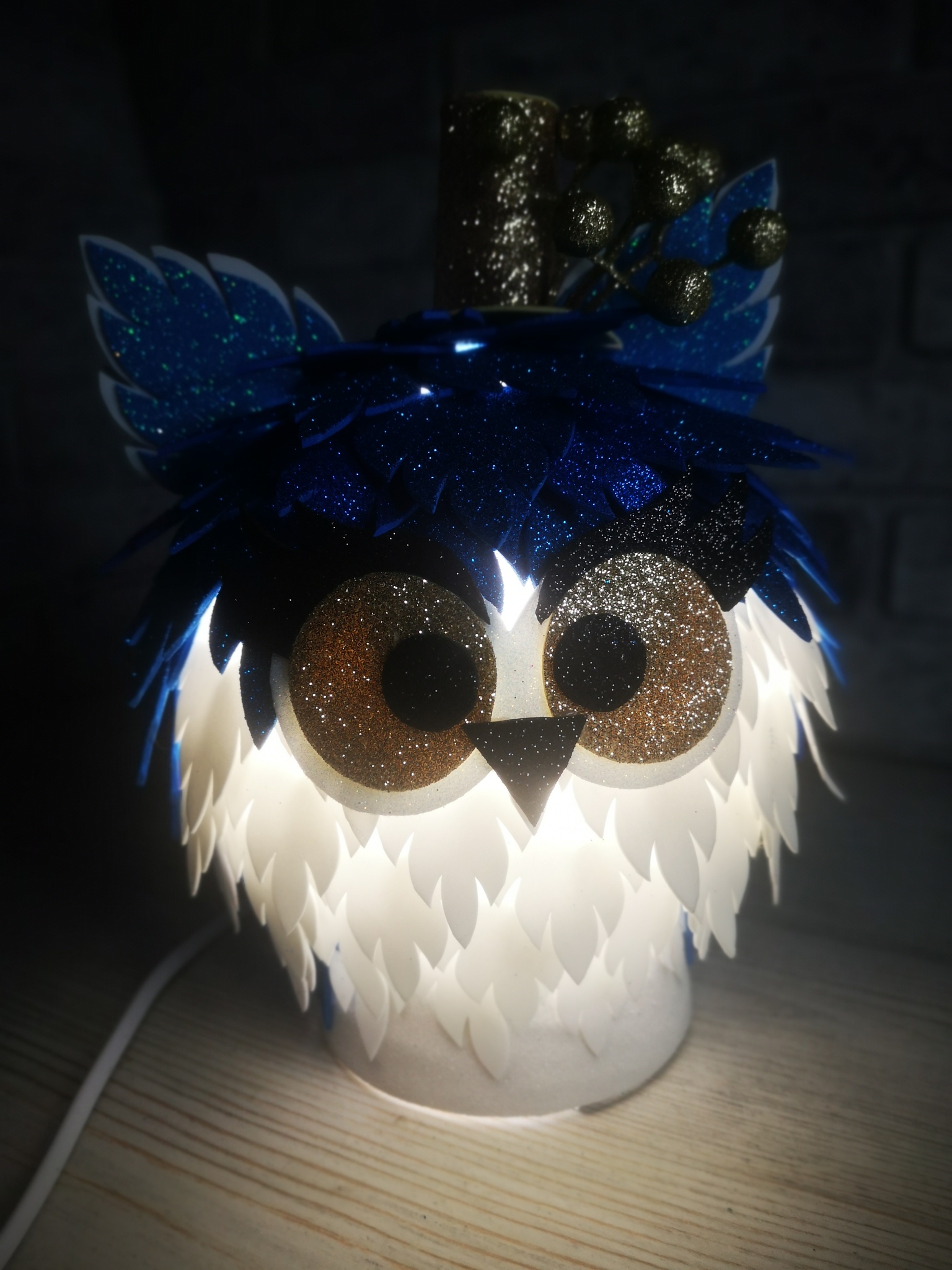 Детский ночник "Совушка"/Светильник настольный из фоамирана цвет синий 30х20х20 см