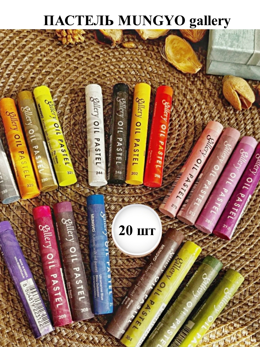 Масляная пастель - графический материал, выпускаемый в виде цветных брусков круглой или квадратной формы или карандашей, с так называемым, пастельным стержнем. производится путем прессования пигмента и масла, как правило, льняного или другого минерального масла. Рисование масляной пастелью будет приятно для тех, кто любит яркие и насыщенные цвета, так как сухая пастель более матовая. Возможность растушевки создает широкий диапазон возможностей: от создания рисунка до написания картины. В отличие от сухой пастели, масляная дает возможность хранить готовые работы без использования фиксатива (закрепителя краски). Масляная пастель – хороший старт для тех, кто хочет попробовать рисование пастелью и сразу иметь готовый набор базовых цветов. Масляная пастель широко используется в декорировании, а также при изготовлении цветов из изолона и фоамирана. В комплект входит 20 мелков по одному цвету: №202 желтый, №206 огненно-красный, №209 кармина, №210 пурпурный, №218 ультрамарин синий, №236 коричневый, №244 белый, №248 чёрный, №279 тысячелетний розовый, №281 светло-фиолетовый, №284 фиолетовый аметист, №304 лимонно-зеленый, №305 зеленый шартрез, №308 тёмная сепия, №315 розово-коричневый, №321 флуоресцентный желтый, №329 золотой светлый металлик, №330 золотой металлик, №332 металлик серебряный.