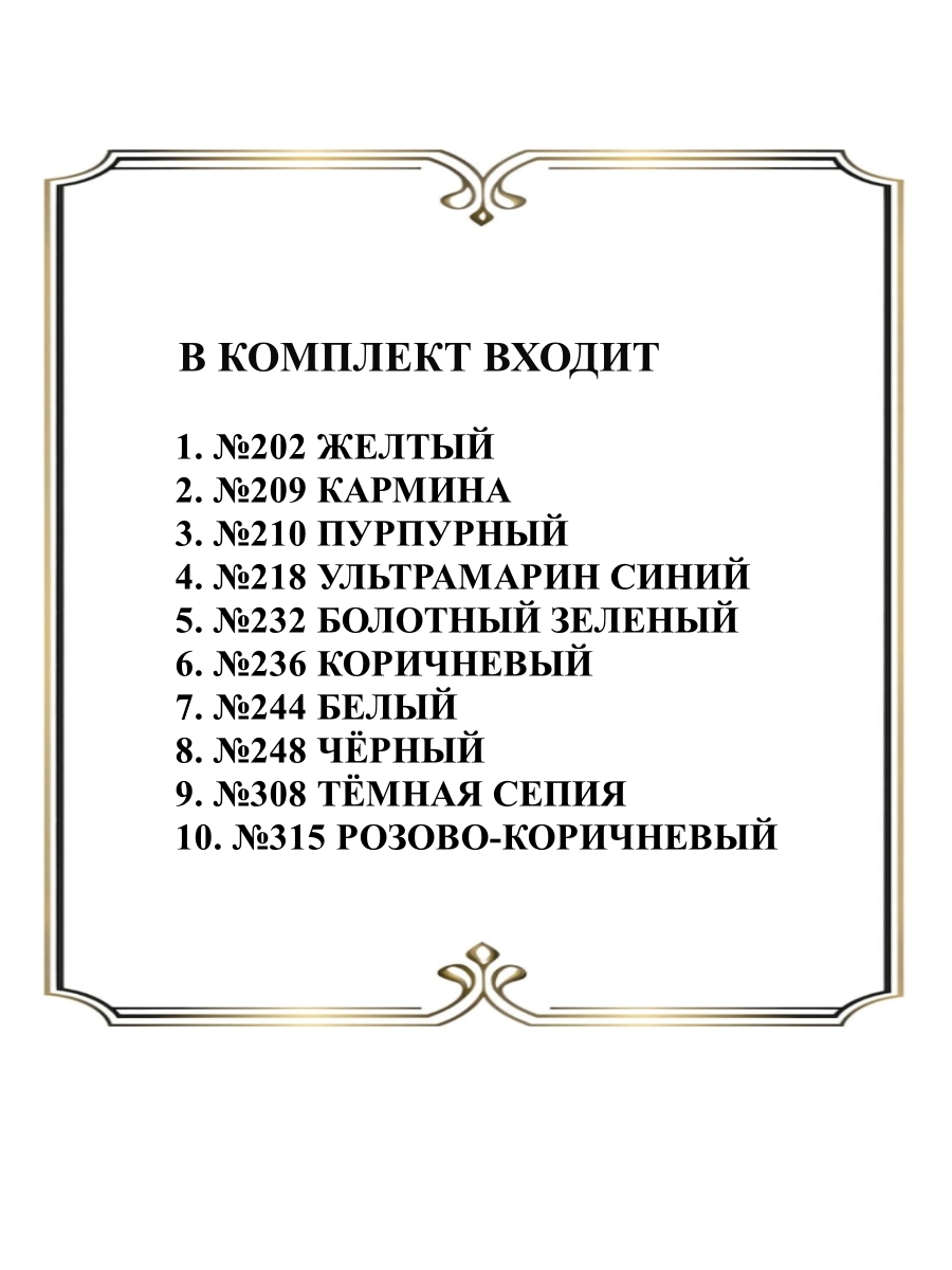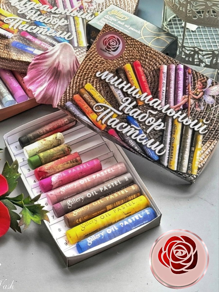 Масляная пастель - графический материал, выпускаемый в виде цветных брусков круглой или квадратной формы или карандашей, с так называемым, пастельным стержнем. производится путем прессования пигмента и масла, как правило, льняного или другого минерального масла. Рисование масляной пастелью будет приятно для тех, кто любит яркие и насыщенные цвета, так как сухая пастель более матовая. Возможность растушевки создает широкий диапазон возможностей: от создания рисунка до написания картины. В отличие от сухой пастели, масляная дает возможность хранить готовые работы без использования фиксатива (закрепителя краски). Масляная пастель – хороший старт для тех, кто хочет попробовать рисование пастелью и сразу иметь готовый набор базовых цветов. Масляная пастель широко используется в декорировании, а также при изготовлении цветов из изолона и фоамирана. В комплект входит 10 мелков по одному цвету: №202 желтый, №209 кармина, №210 пурпурный, №218 ультрамарин синий, №232 болотный зеленый, №236 коричневый, №244 белый, №248 чёрный, №308 тёмная сепия, №315 розово-коричневый.