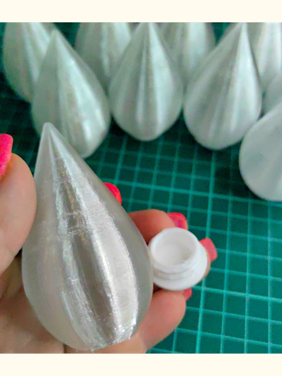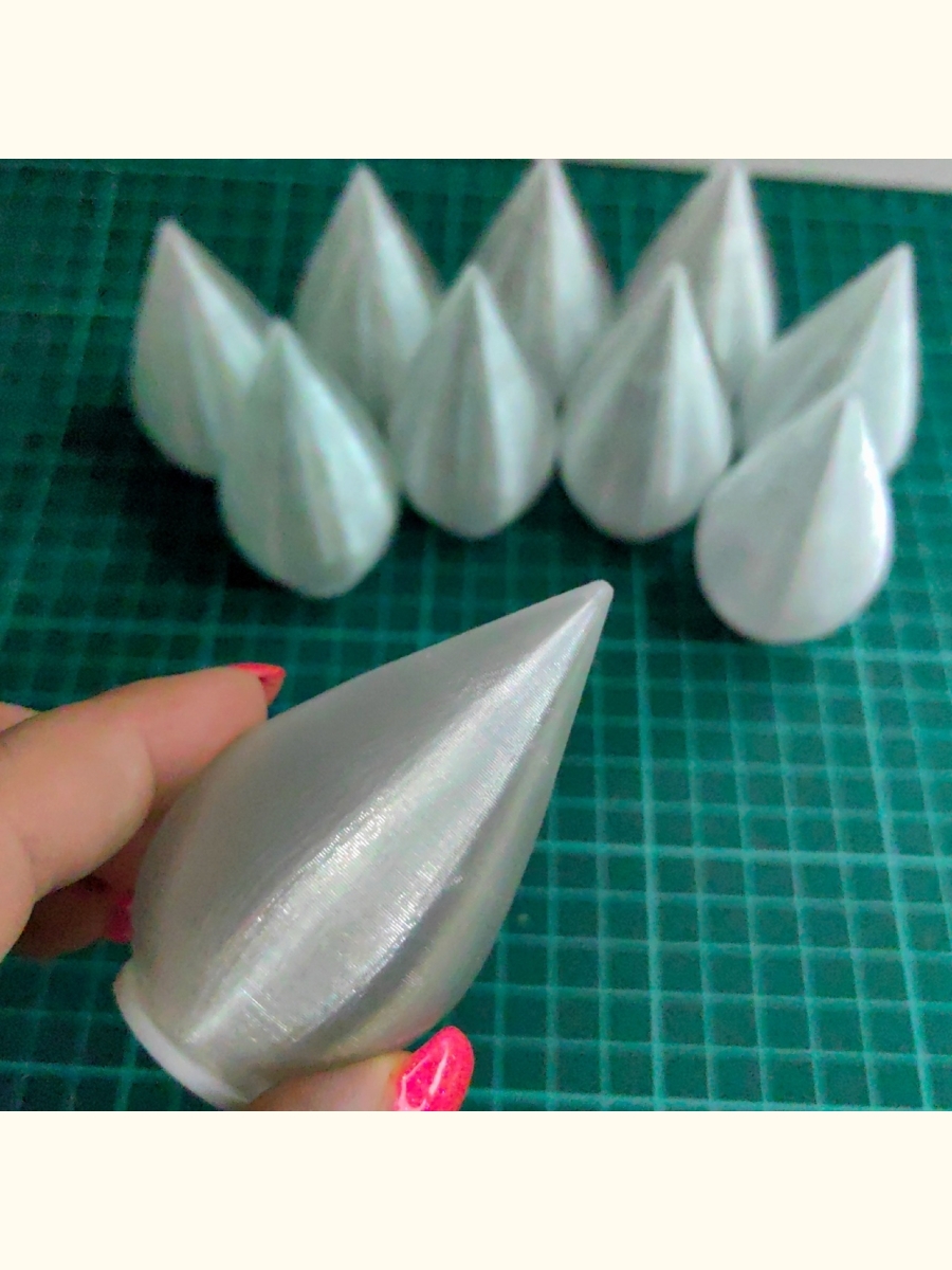 Плафон выполнен на 3D принтере из высокопрочного матового пластика и имеет отличную светопропускаемость. Он имеет форму сферического конуса, что позволяет свету равномерно распределяться внутри светильника или цветка. Очень удобен в использовании.