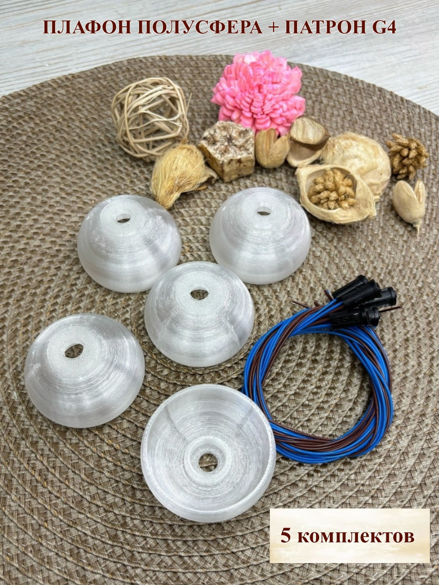 Плафон на резьбе полусфера+патрон G4 "Тюльпан" D5cм, H2,7см. 5шт