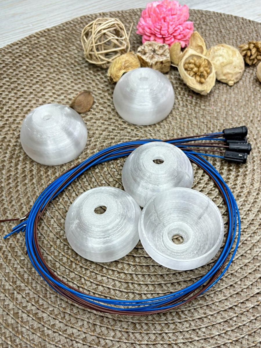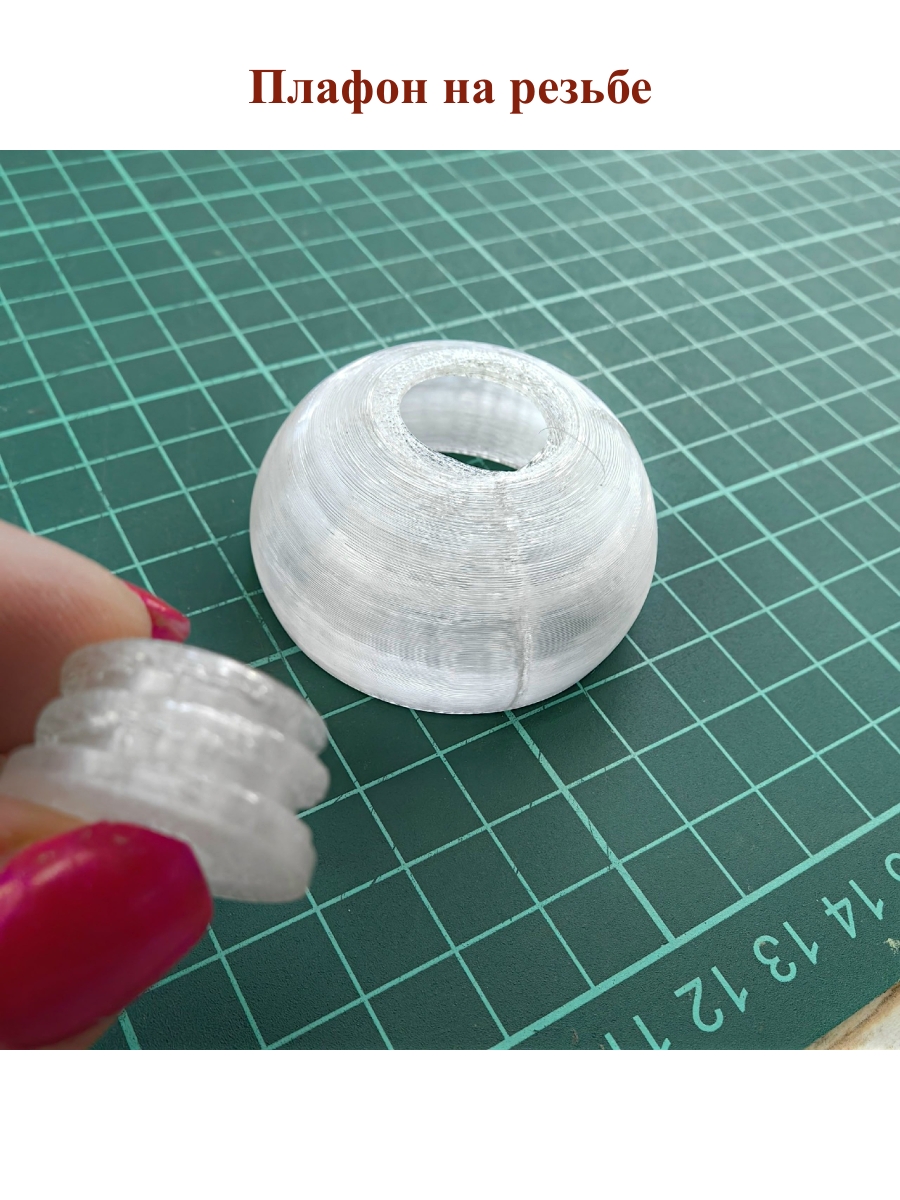 Плафон выполнен на 3D принтере из высокопрочного матового пластика и имеет отличную светопропускаемость. Он имеет форму шара, что позволяет свету равномерно распределяться внутри светильника или цветка. Очень удобен в использовании.