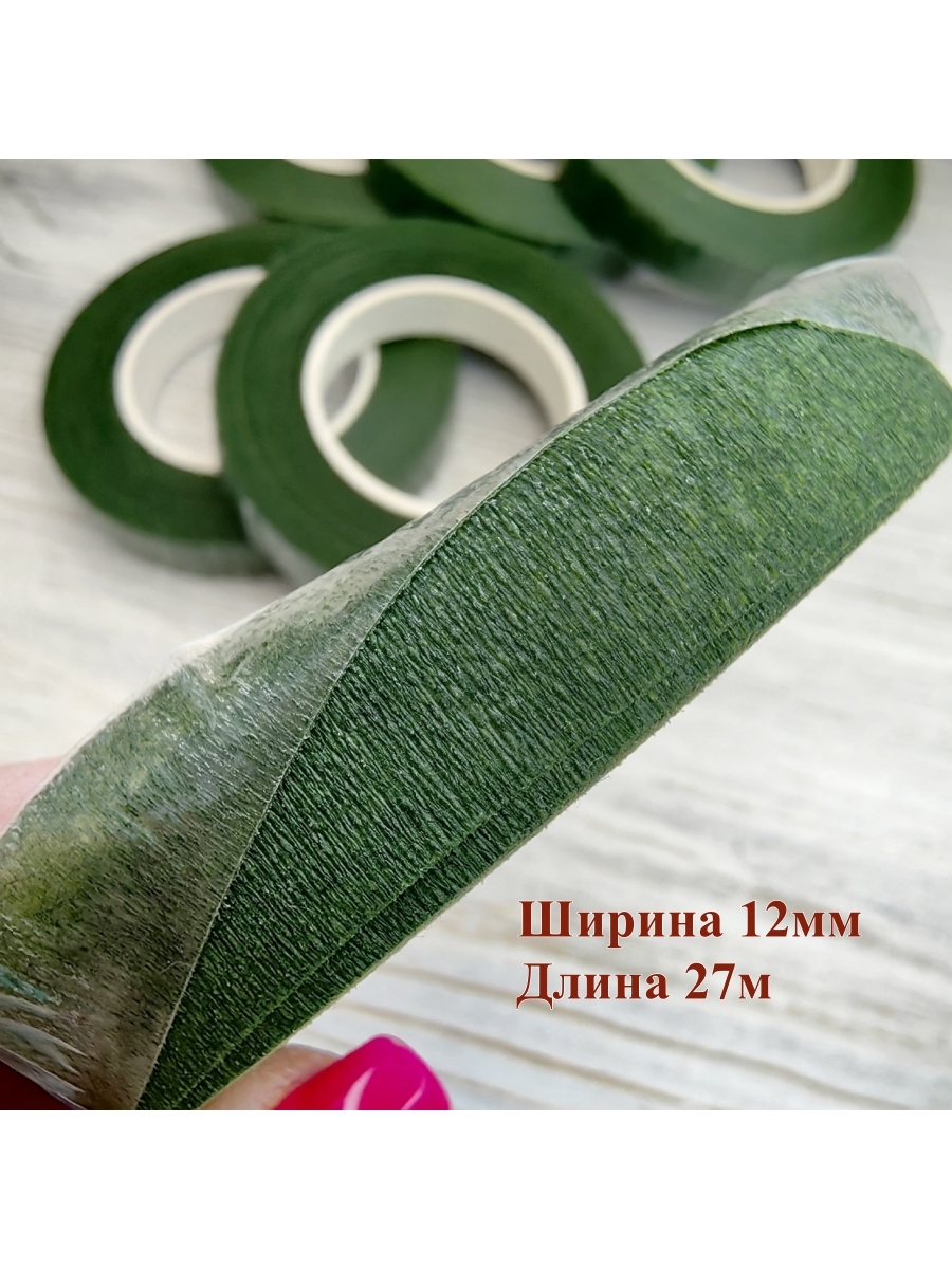 Тейп лента - это специальная синтетическая ткань с клеящейся поверхностью, которая используется во флористике. Она очень эластичная и прочная, что делает ее незаменимой в процессе оформления букетов и разных подарочных композиций. Основное предназначение тейп-ленты – декорирование проволоки, из которой потом делают стебли для цветов ручной работы. Этот подручный материал применяют при создании бумажных букетов, цветов из холодного фарфора или полимерной глины. Также лента используется во многих других видах прикладного творчества: квиллинг, бисероплетение, керамика и т. д. Она незаменима при изготовлении популярных сегодня деревьев из бисера и денег. Правильно подобранный цвет ленты делает ее незаметной среди других деталей изделия. Флористическая лента играет важную роль при создании цветочных композиций и при оформлении праздников. Благодаря прочности и эластичности этот материал часто используется в некоторых видах рукоделия. Она: легко натягивается, плотно ложится на поверхность обрабатываемого предмета, благодаря эластичности принимает любую форму, позволяет продлить свежесть срезанного цветка, является отличным материалом для обработки гладкой поверхности перед фиксацией флористической композиции. Способ применения: отмотать необходимое для работы количество, слегка растянуть, надорвать кончик, обмотать им начало и на 20-30 секунд сжать первый виток пальцами, далее наматывайте ленту наискосок частично перекрывая предыдущий слой.